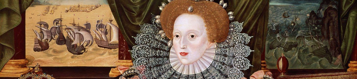 The Armada Portrait, which Elizabeth I had painted after her victory over the Spanish. The wrecked Spanish fleet can be seen in the window behind her.