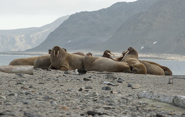 Despite their formidable size, walruses are easily spooked! In walrus herds, any sign of danger can cause stampedes as the animals flee land and head towards the safety of water.