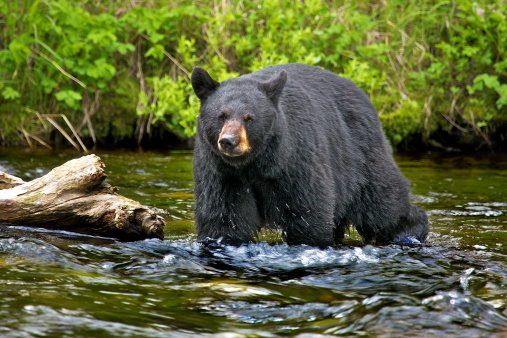 Image ⓒ Black bear orange/red background: Getty (137271612). Black in river by log: Getty (974185272). Black bear in grass: Getty (160869655).