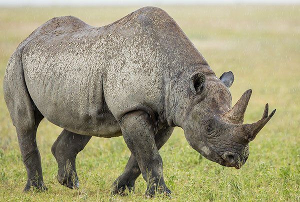 Credits – Black rhino walking on green grass: Stu Porter, Dreamstime. Picture of rhino from side: Andreanita, Dreamtime.
