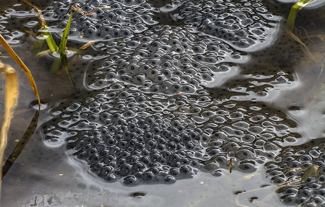 It all starts with adult frogs laying hundreds of tiny eggs, which clump together in groups known as frogspawn. This happens in early spring, when the weather is just starting to get warmer. Spotting frogspawn is often thought of as being a key sign of spring!