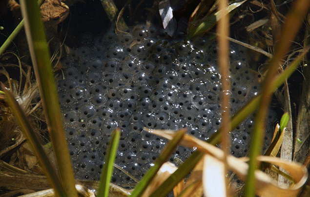 You can hunt for frogspawn in shallow, still water – a garden pond, for example! As the eggs are defenceless, they’re usually laid among vegetation and just below the surface of the water, to give them some protection.